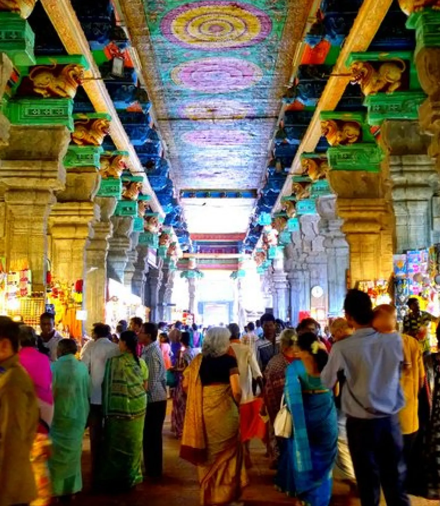 The Meenakshi Amman Temple, a legendary Dravidian marvel in Madurai, Tamil Nadu, is dedicated to Goddess Meenakshi (a fierce form of Parvati) and her consort Lord Sundareshwarar (Shiva). Believed to have origins dating back to the 6th century CE, the temple gained its current grandeur under the Nayak dynasty (16th–17th centuries), who expanded it into a sprawling complex with 14 towering gopurams (gateways) adorned with thousands of vibrant sculptures. The temple’s sacred Golden Lotus Tank, where devotees ritually bathe, and the mesmerizing 1,000-Pillar Hall (with 985 intricately carved pillars) showcase its architectural brilliance. A key pilgrimage site, it is also famed for the Meenakshi Thirukalyanam, an annual festival reenacting the divine marriage of Meenakshi and Shiva, attracting over a million devotees. Recognized by UNESCO as part of the Great Living Chola Temples, the temple remains a vibrant center of worship, art, and culture. Key Highlights Goddess-Centric Worship – Unlike most Shiva temples, Meenakshi is the primary deity, symbolizing feminine divinity’s supremacy. 14 Colorful Gopurams – Covered in 33,000+ sculptures, the tallest (Southern Gopuram) stands at 52 meters. 1,000-Pillar Hall (Ayiram Kaal Mandapam) – Actually has 985 pillars, each uniquely carved with deities, mythical creatures, and dancers. Musical Pillars – Some pillars produce Carnatic musical notes when tapped. Golden Lotus Tank – Believed to grant wisdom; its walls hold ancient Tamil inscriptions. Living Temple Traditions – Priests perform 4 daily rituals unchanged for centuries. Meenakshi Thirukalyanam Festival – A 12-day grand celebration of the divine wedding (April/May). Asymmetric Mandala Design – The temple’s layout follows sacred cosmic geometry. Warrior Goddess Legend – Meenakshi was born with three breasts, which vanished upon meeting Shiva.