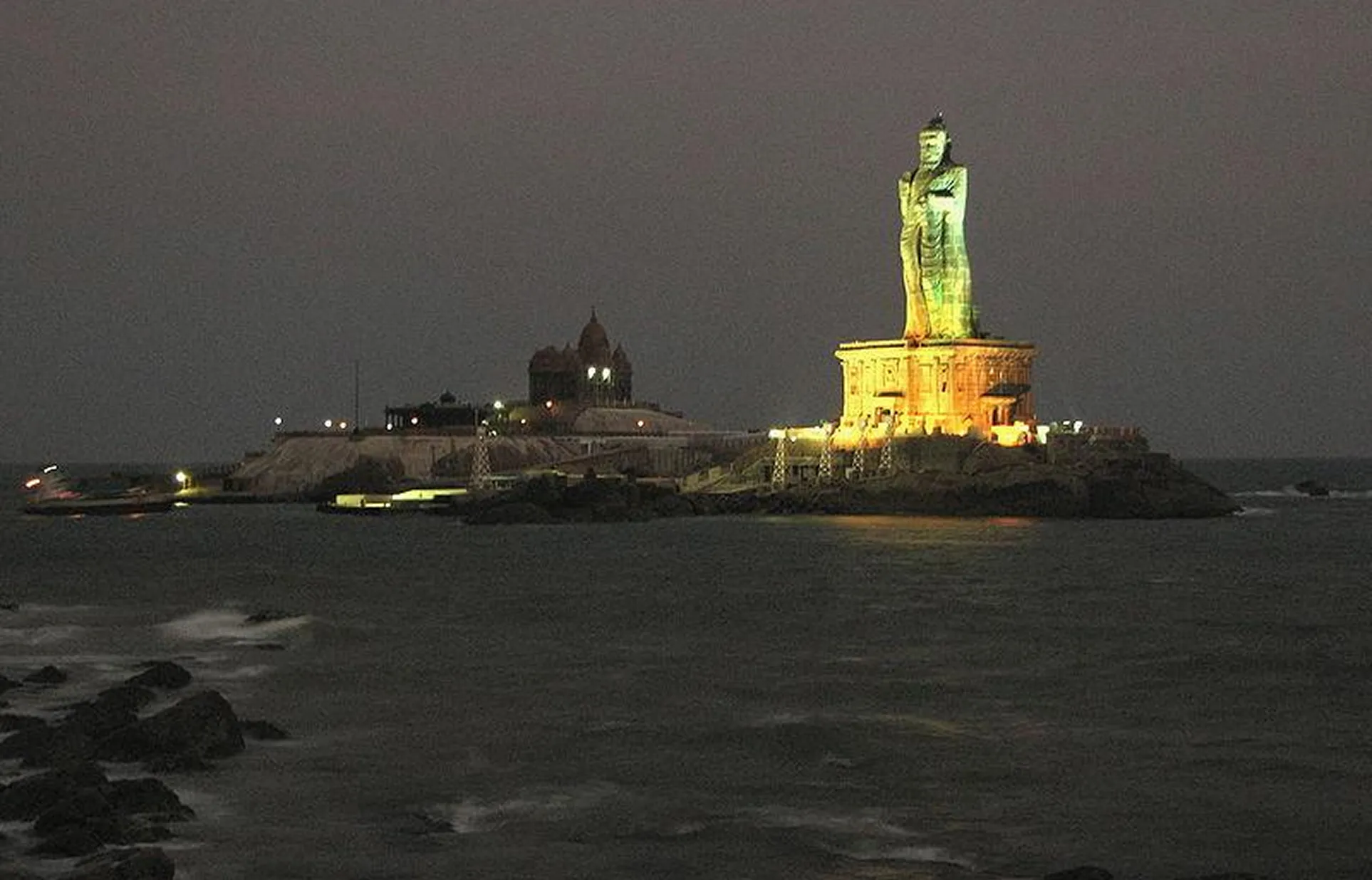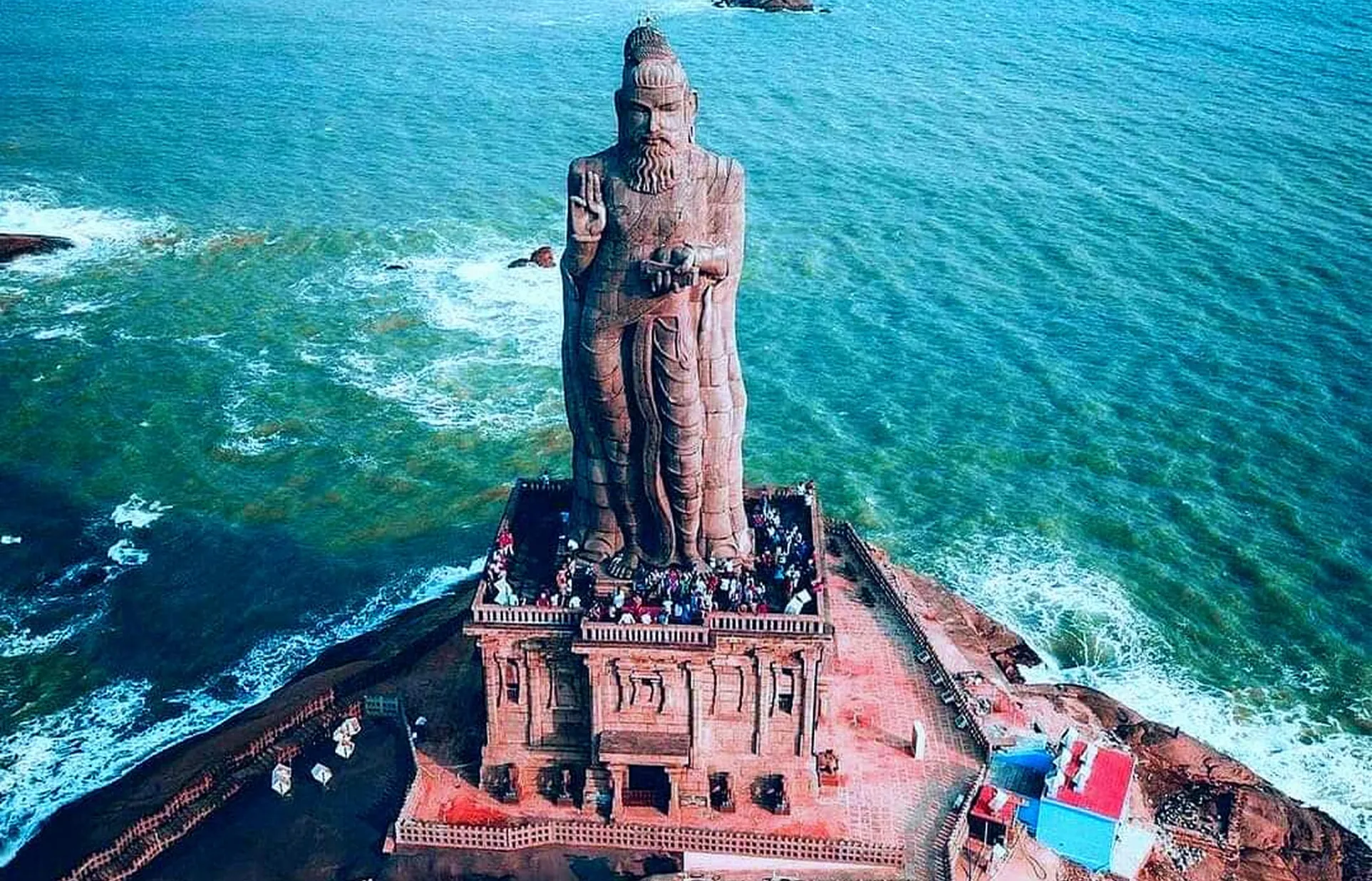 The Thiruvalluvar Statue is a monumental stone sculpture dedicated to the celebrated Tamil poet and philosopher Thiruvalluvar, author of the ancient Tamil literary work "Thirukkural." It stands at a towering height of 133 feet (41 meters) including its pedestal, symbolizing the 133 chapters of the "Thirukkural." The statue itself is 95 feet tall, standing on a 38-foot pedestal representing the 38 chapters on virtue, the first section of the "Thirukkural."