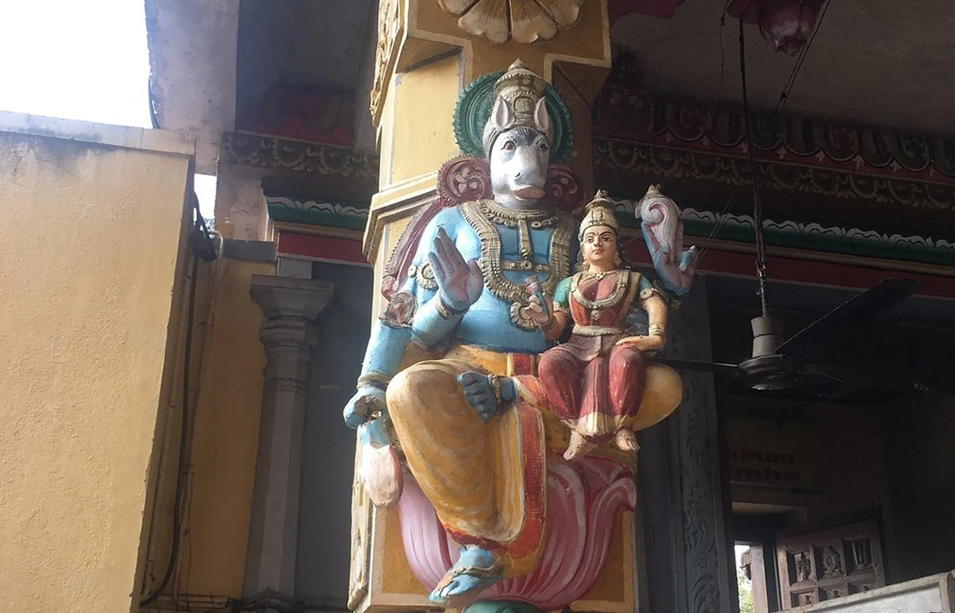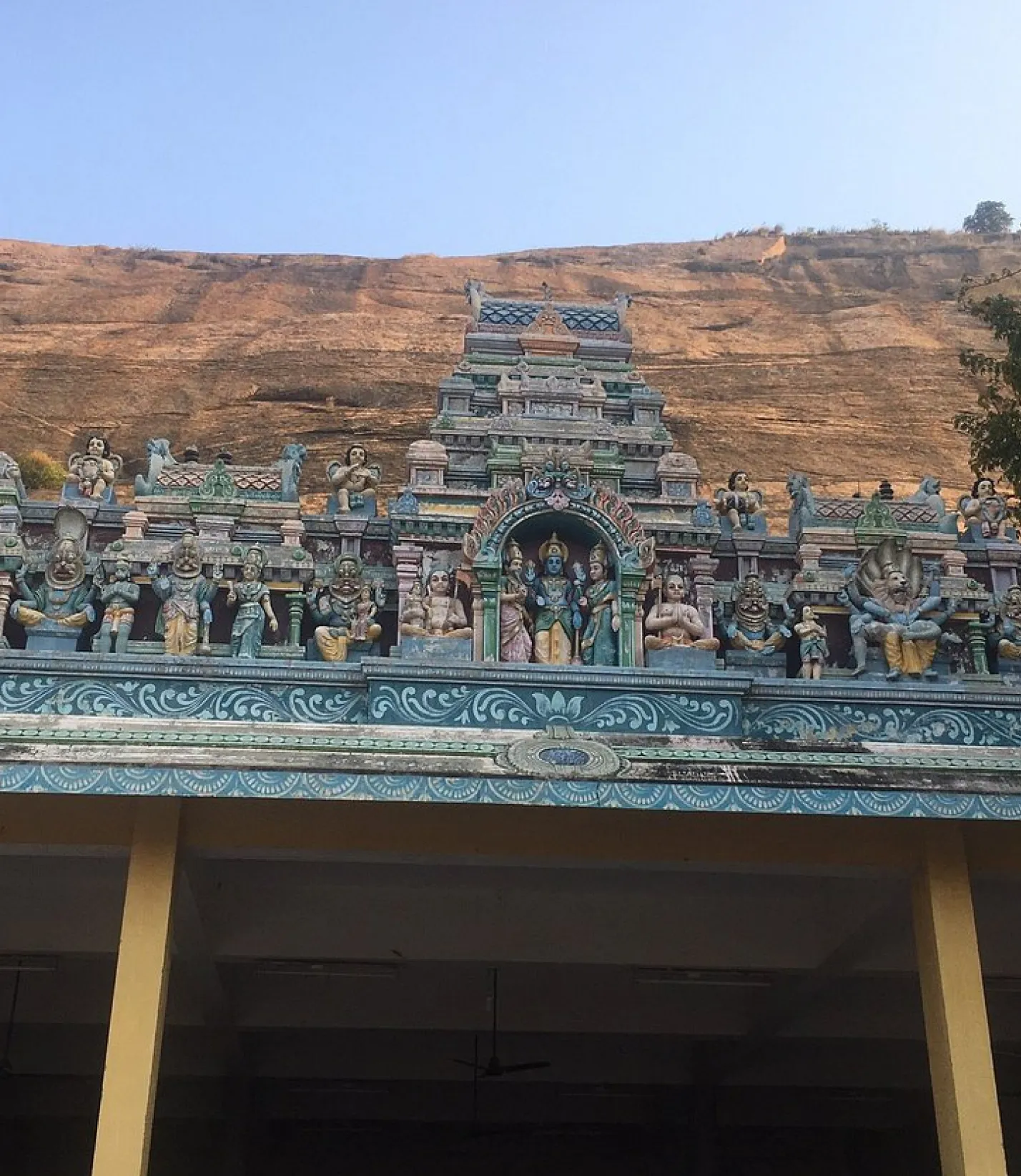 Yoga Narasimar Temple is a magnificent ancient rock-cut temple dedicated to Lord Vishnu in his Yoga Narasimha avatar—a calm and meditative form of the fierce Narasimha deity. The temple is carved out of the hill, representing the largest seated murti (idol) of Narasimha with four arms, two resting on his lap and two holding conch and chakra. The goddess shrine of Narasingavalli Thayar is also present here, with the deity depicted sitting alongside Narasimha.
